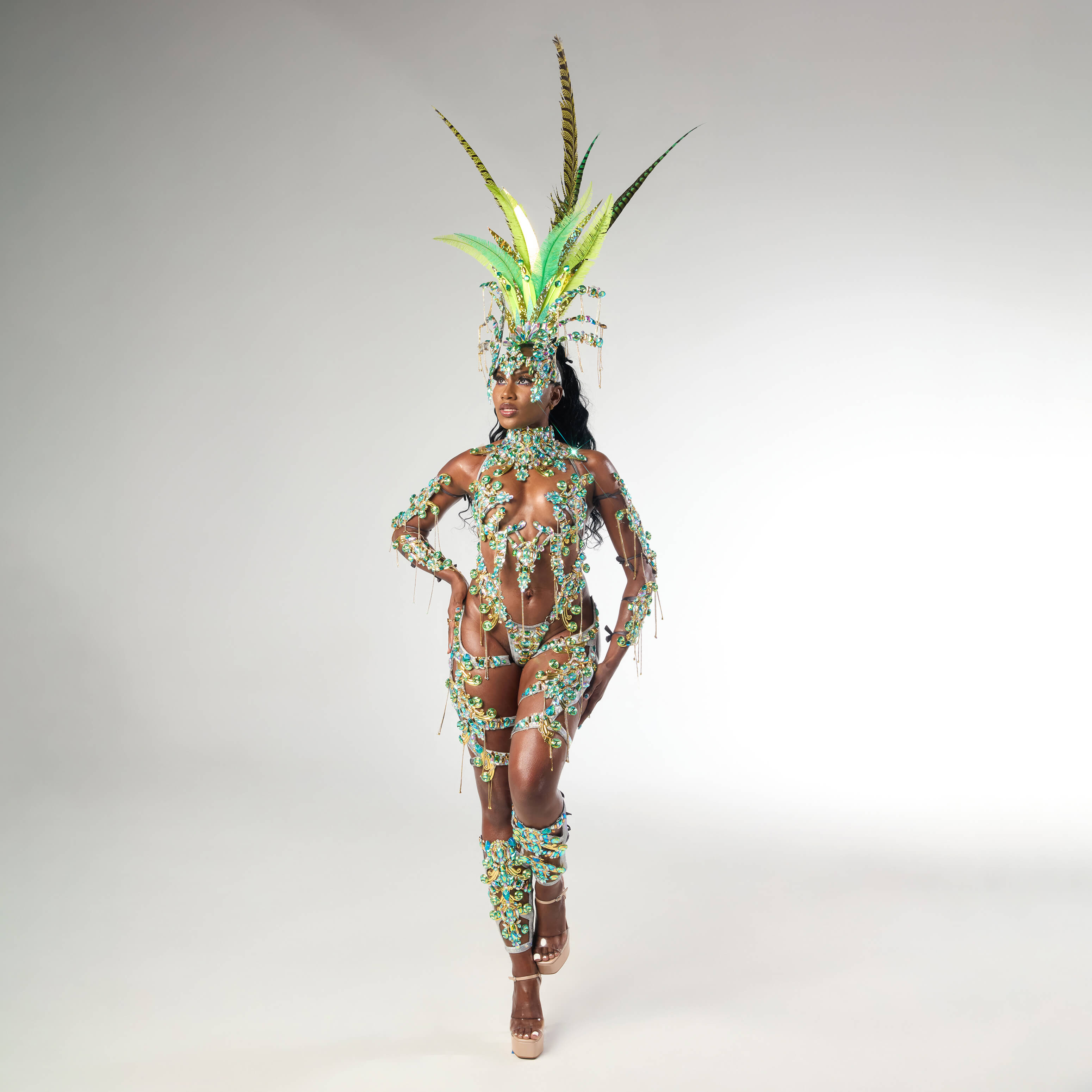 Jeweled Feather Headpiece Included